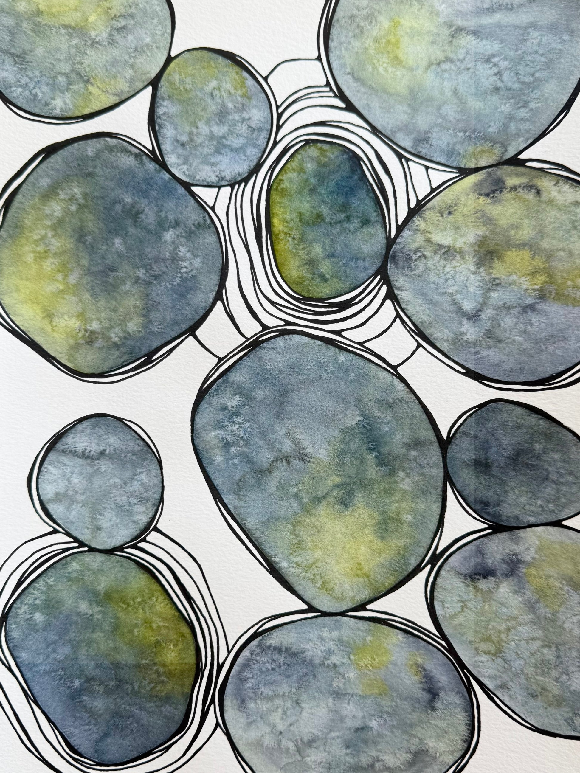 Born in England and moving to Canada at 16, she lived in Stoney Creek for 40 years before settling in Pelham, where the scenic countryside and rolling Niagara escarpment now provide daily inspiration. Drawn to the quiet strength of natural forms, Sue holds a special affinity for pebbles - symbols of stability, eternity and the tireless power of nature - which often find their way into her artistic vision as reminders of beauty, endurance and wonder.