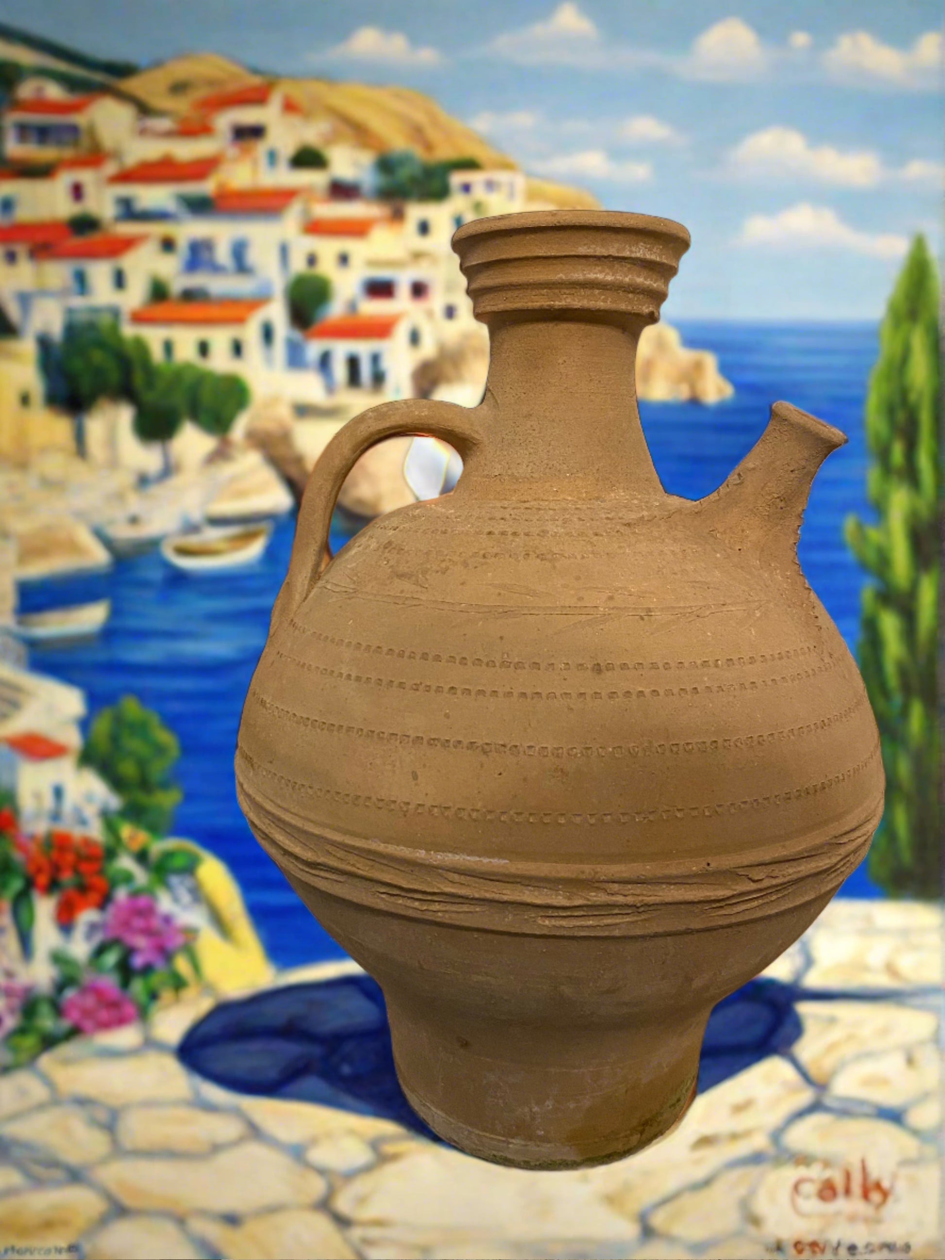 - Hand-thrown Cretan terracotta