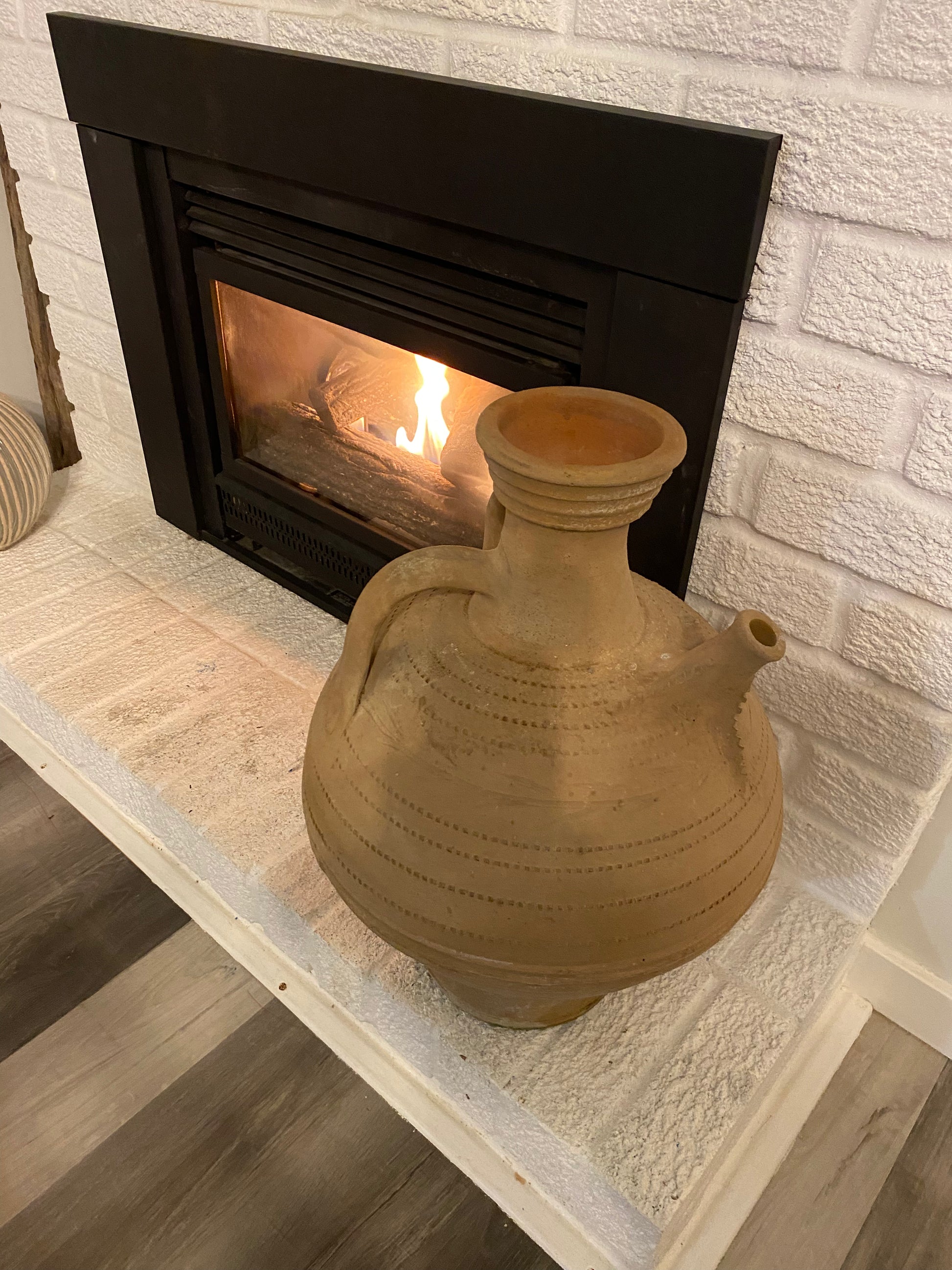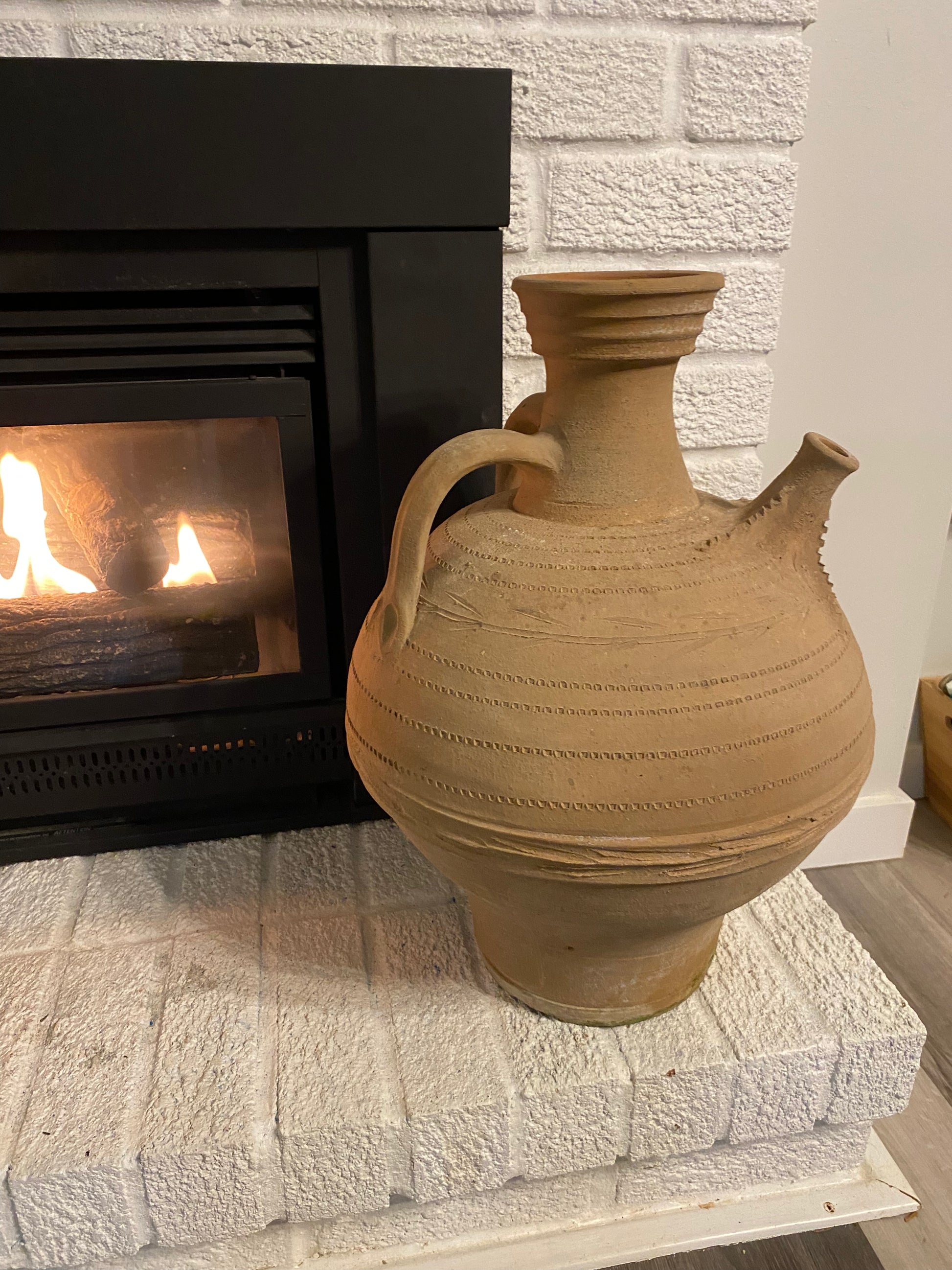 The Brika is an ancient design and the original Greek name for this pouring vessel. The hand-thrown Cretan terracotta can be found in the same form in archaeological museums in Greece.