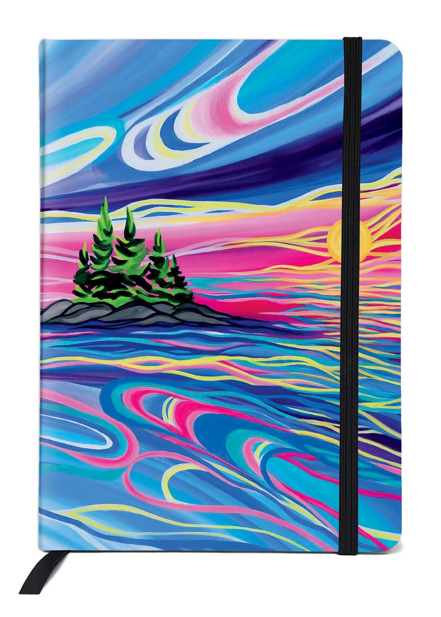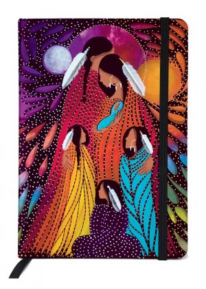 80 pages of lined paper with a hard bound cover, elastic closure/bookmark. The artists name, tribal affiliation, biography and title of the design appear on the back cover. Designed in Canada.
