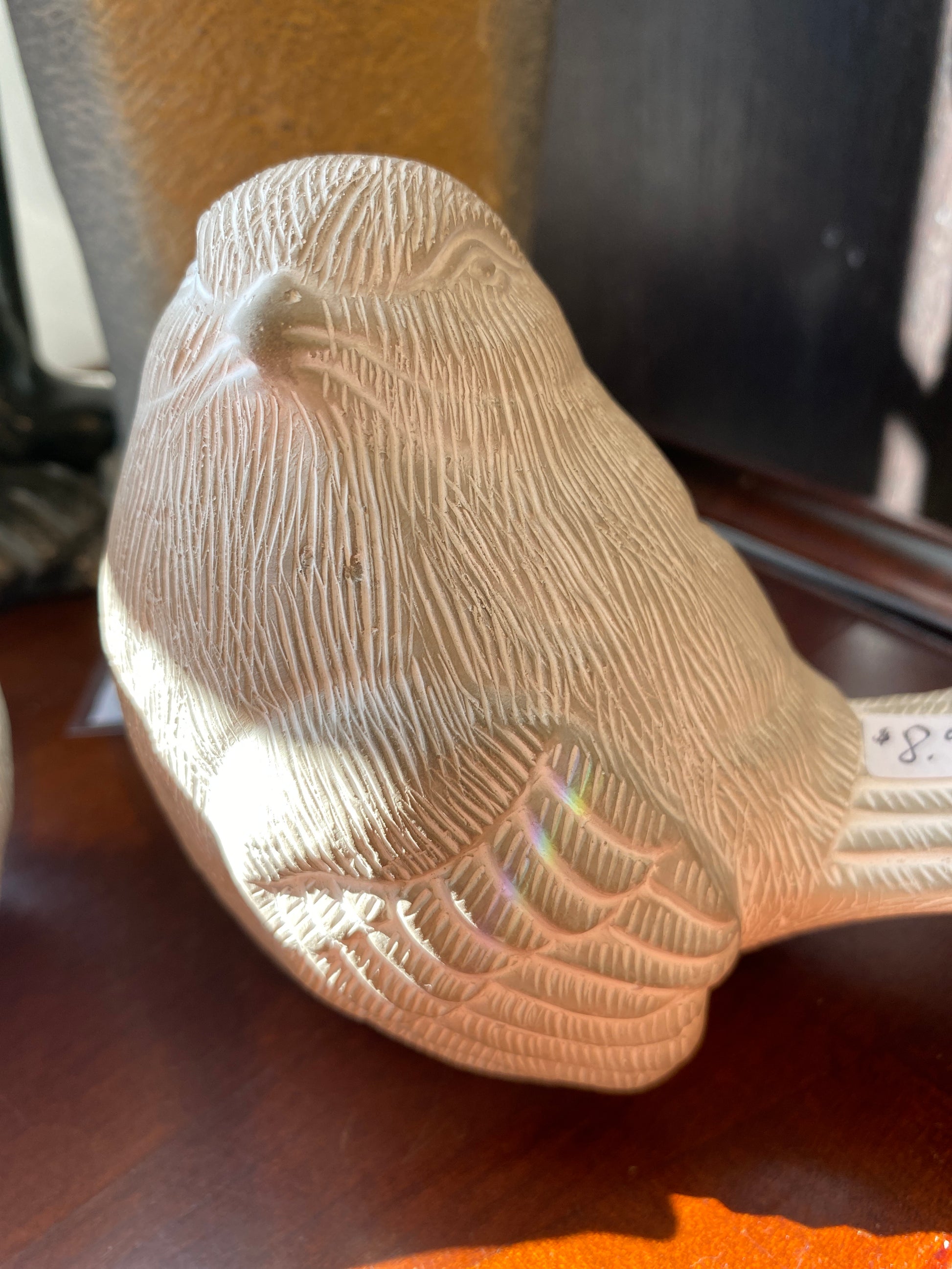 Add a charming touch to your home decor with our small cement bird. Crafted from cement, this decorative piece is sure to bring a unique aesthetic to any room. Perfect for bird enthusiasts or anyone looking for a lovely accent piece.