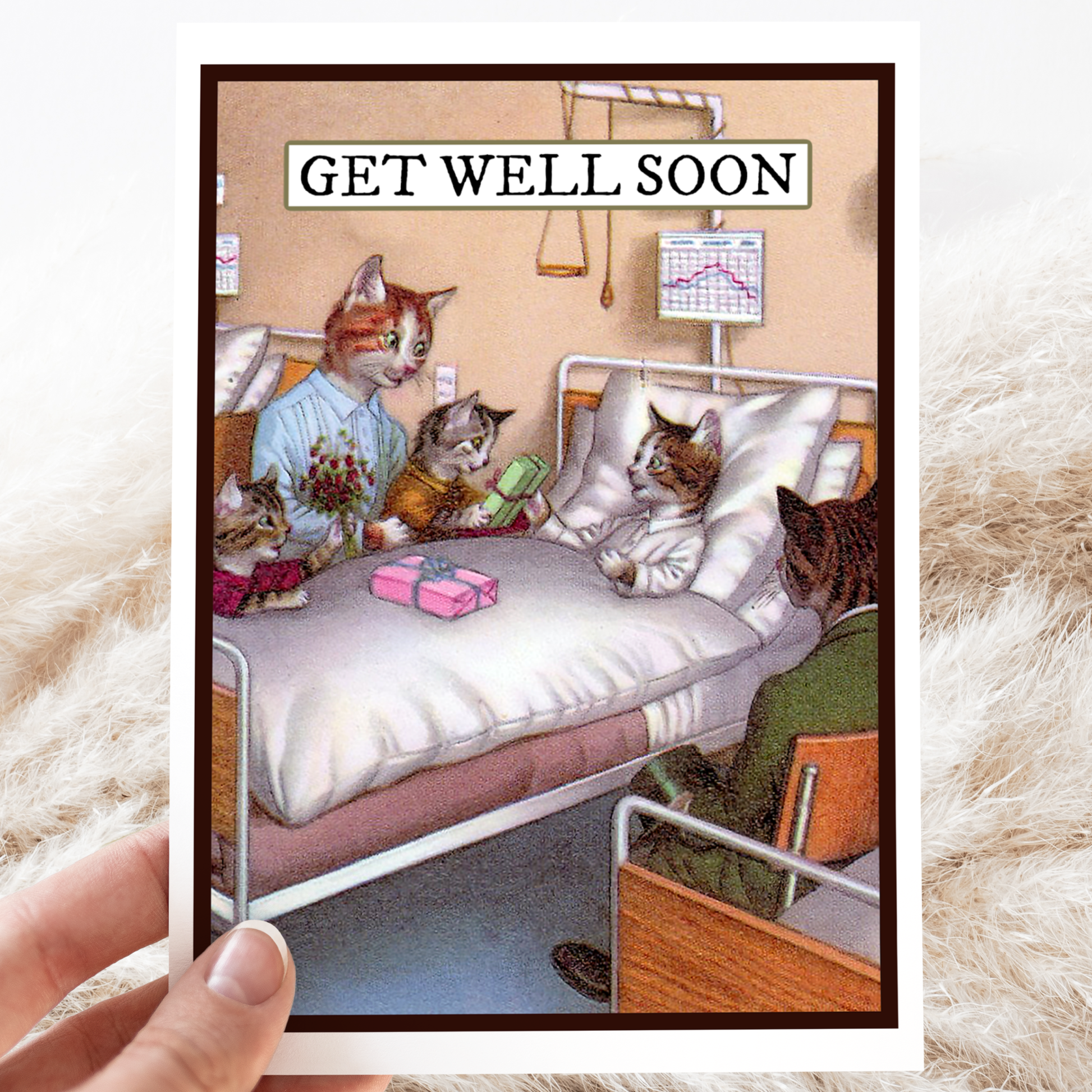 Greeting Card. Vintage Cats. GET WELL SOON.