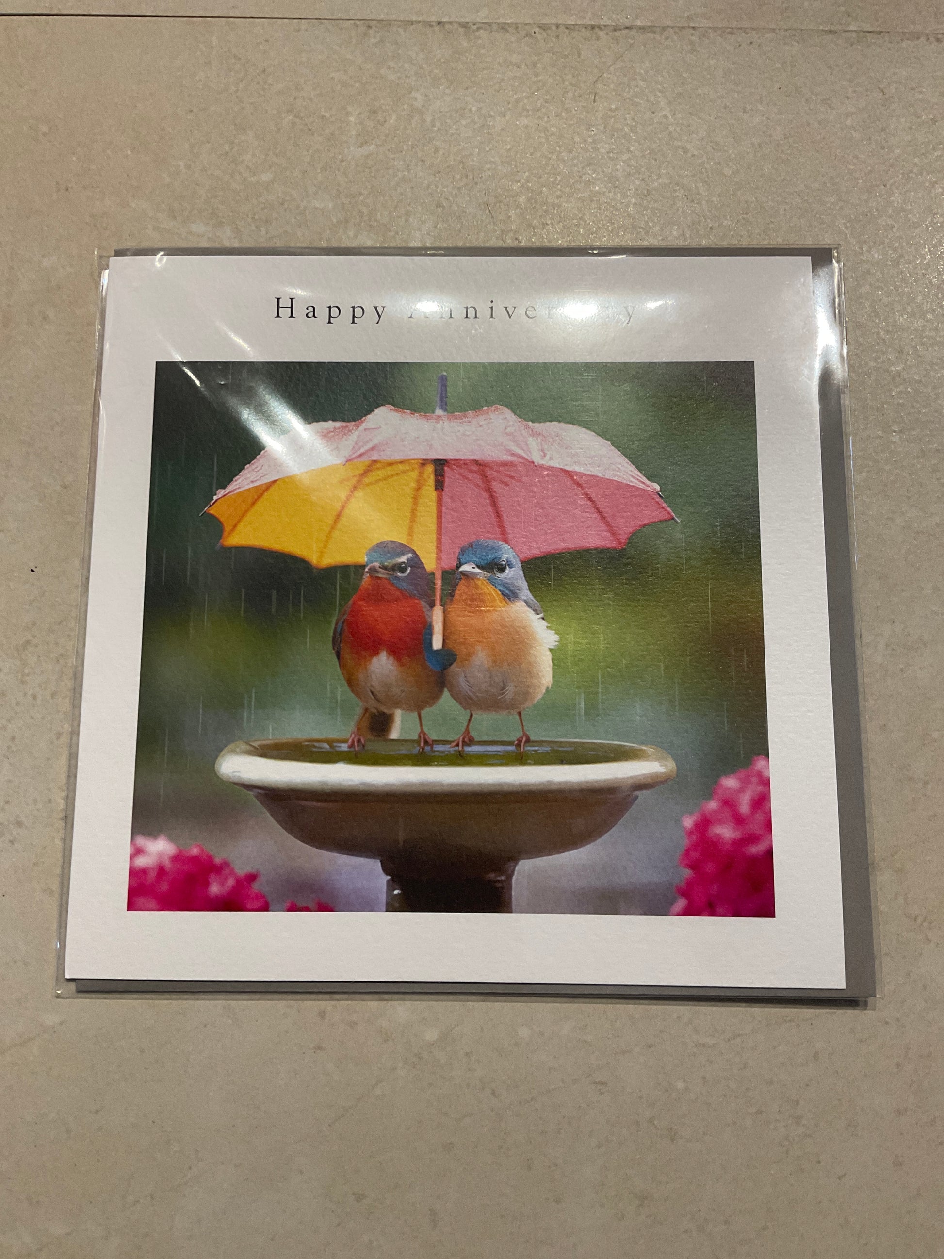 Celebrate your love with our Happy Anniversary Card! This adorable card features sweet little birds, adding a charming touch to your special message. Show your partner how much they mean to you with this perfect card. Inspire love and joy with our anniversary card. Blank inside.