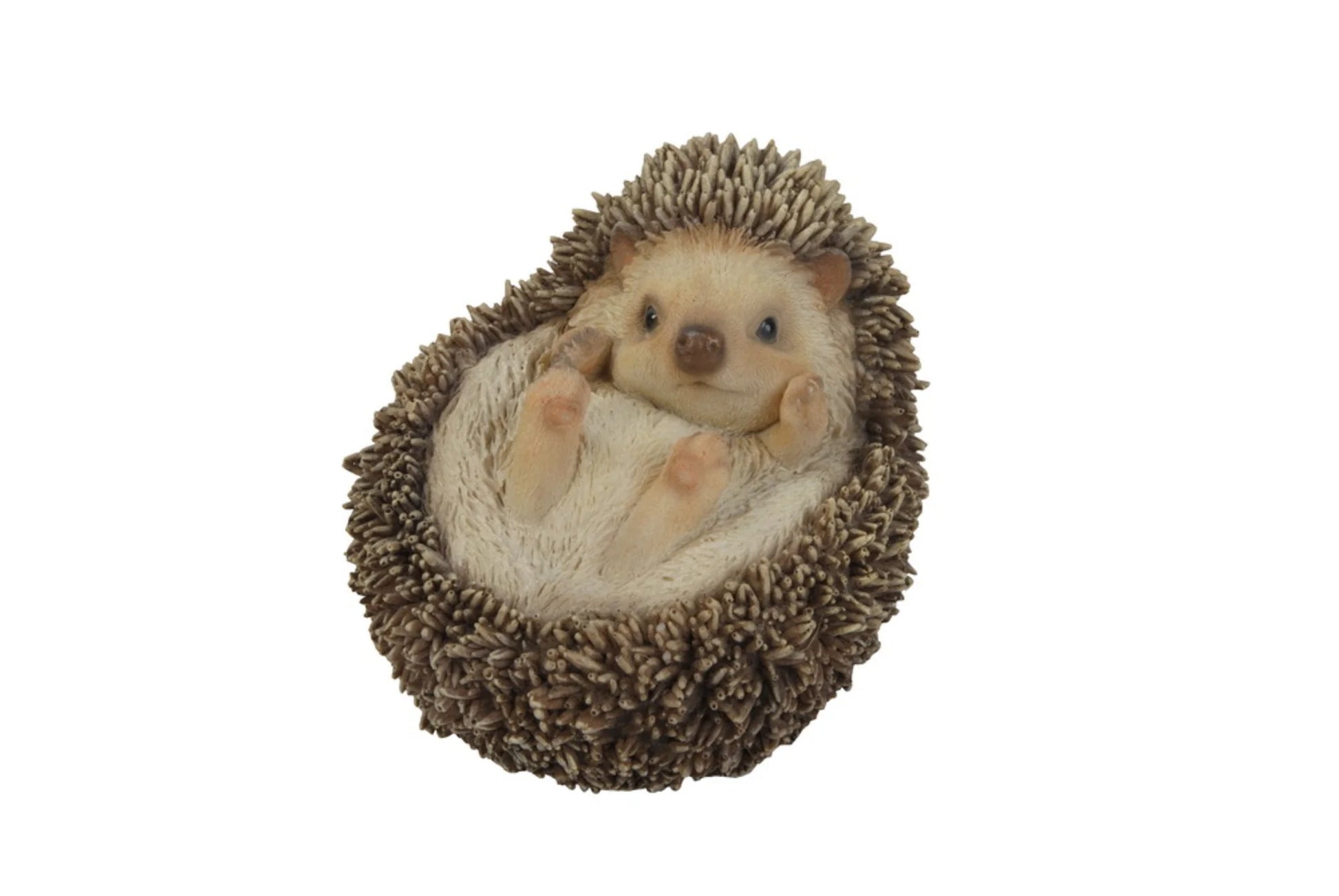 Give a touch of wildlife sanctuary to your garden or backyard with this adorable hedgehog garden ornament. Made with polyresin, this statue is good for both indoors and outdoors.