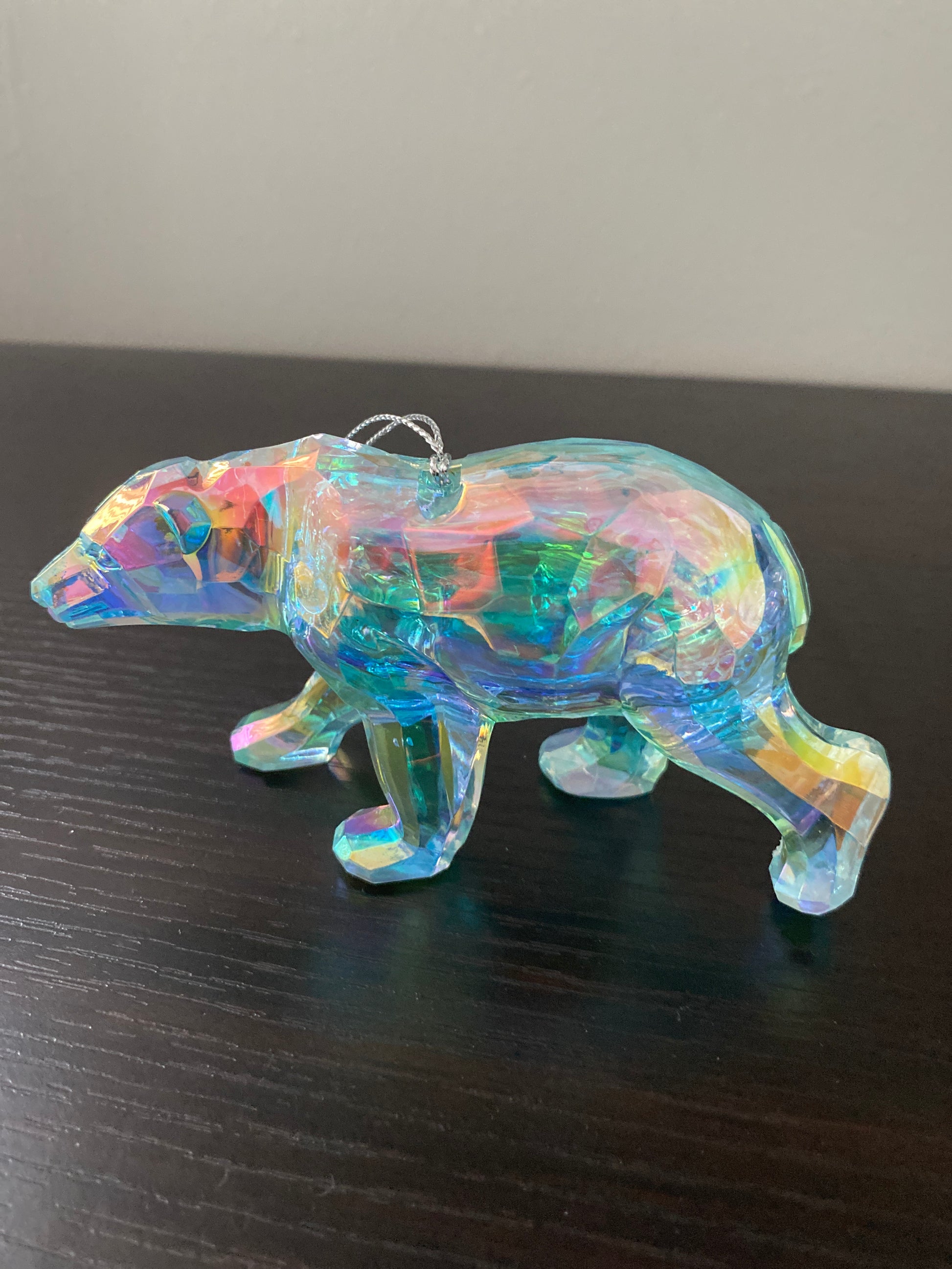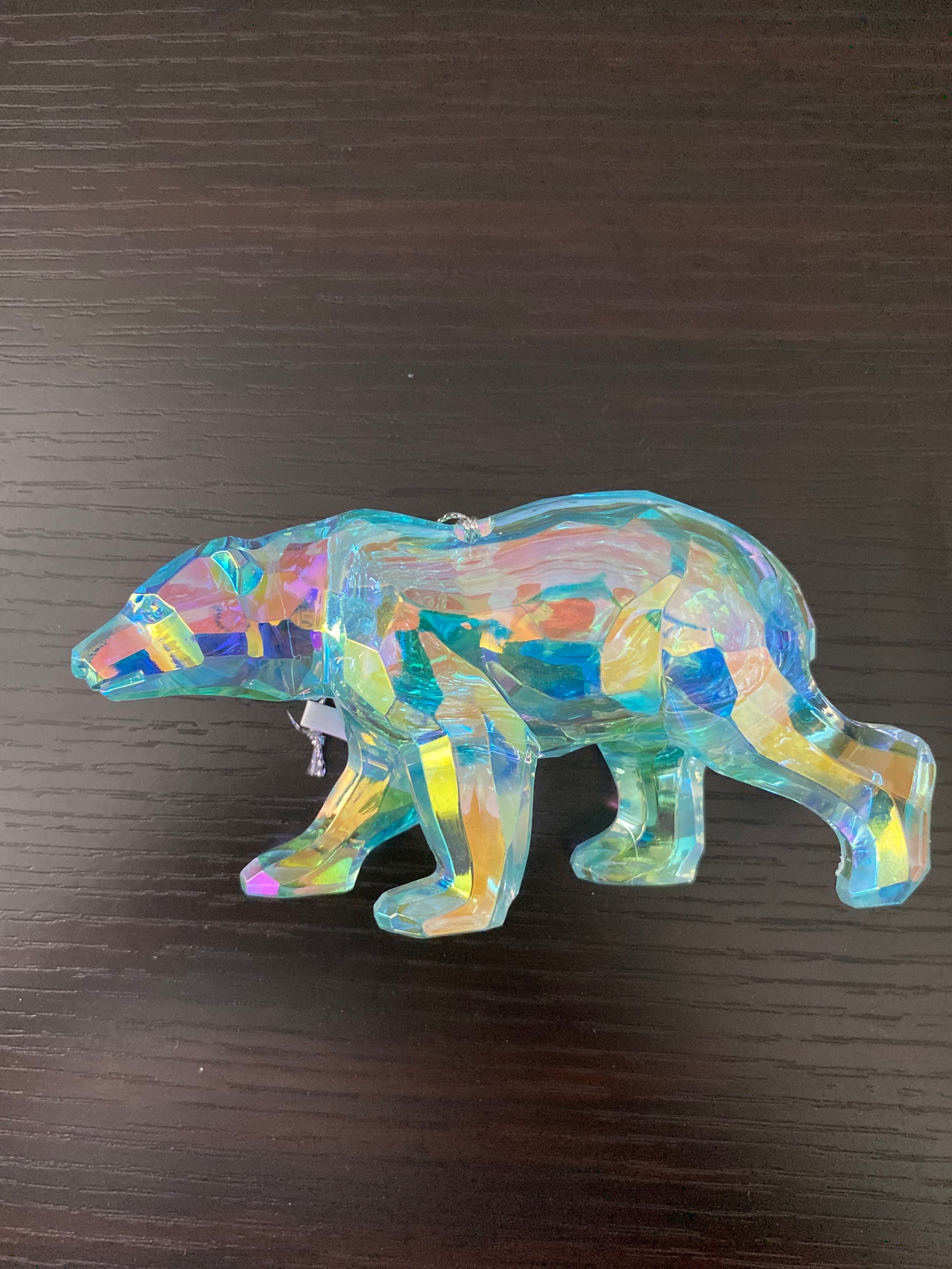 Add a touch of magic to your tree with this enchanting Bear Ornament. With its shimmering finish that catches and reflects light beautifully, this charming bear appears to glow with holiday spirit. The iridescent effect gives it a dreamy, almost holographic look that sparkles from every angle.