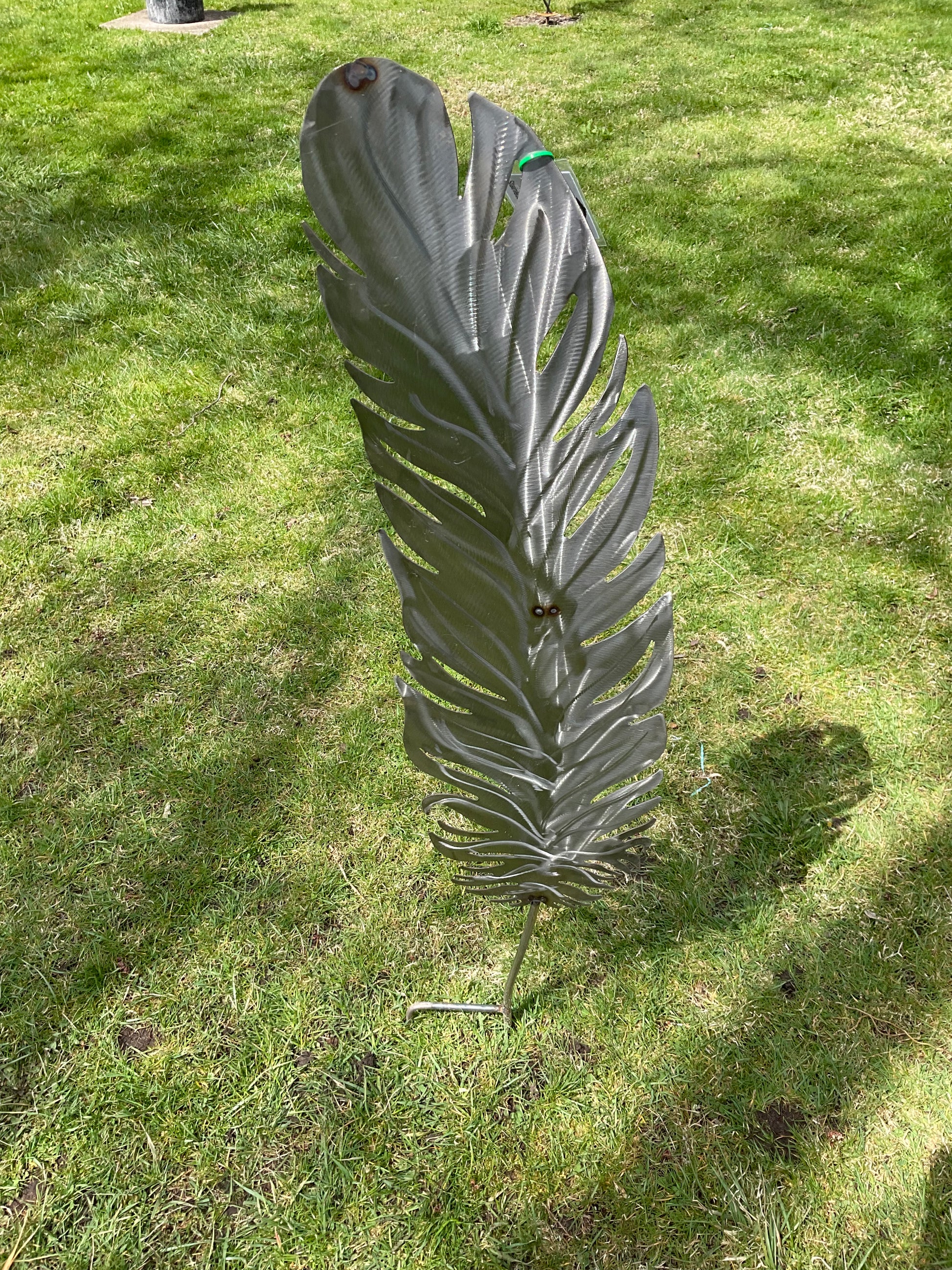 Add a touch of whimsy to your garden with Metal Feathers! These stainless steel or rusted metal feathers stand at 39" high and are 9" wide, bringing a touch of elegance to any outdoor space. Perfect for adding a unique and eye-catching element to your garden. Handcrafted in Ontario.