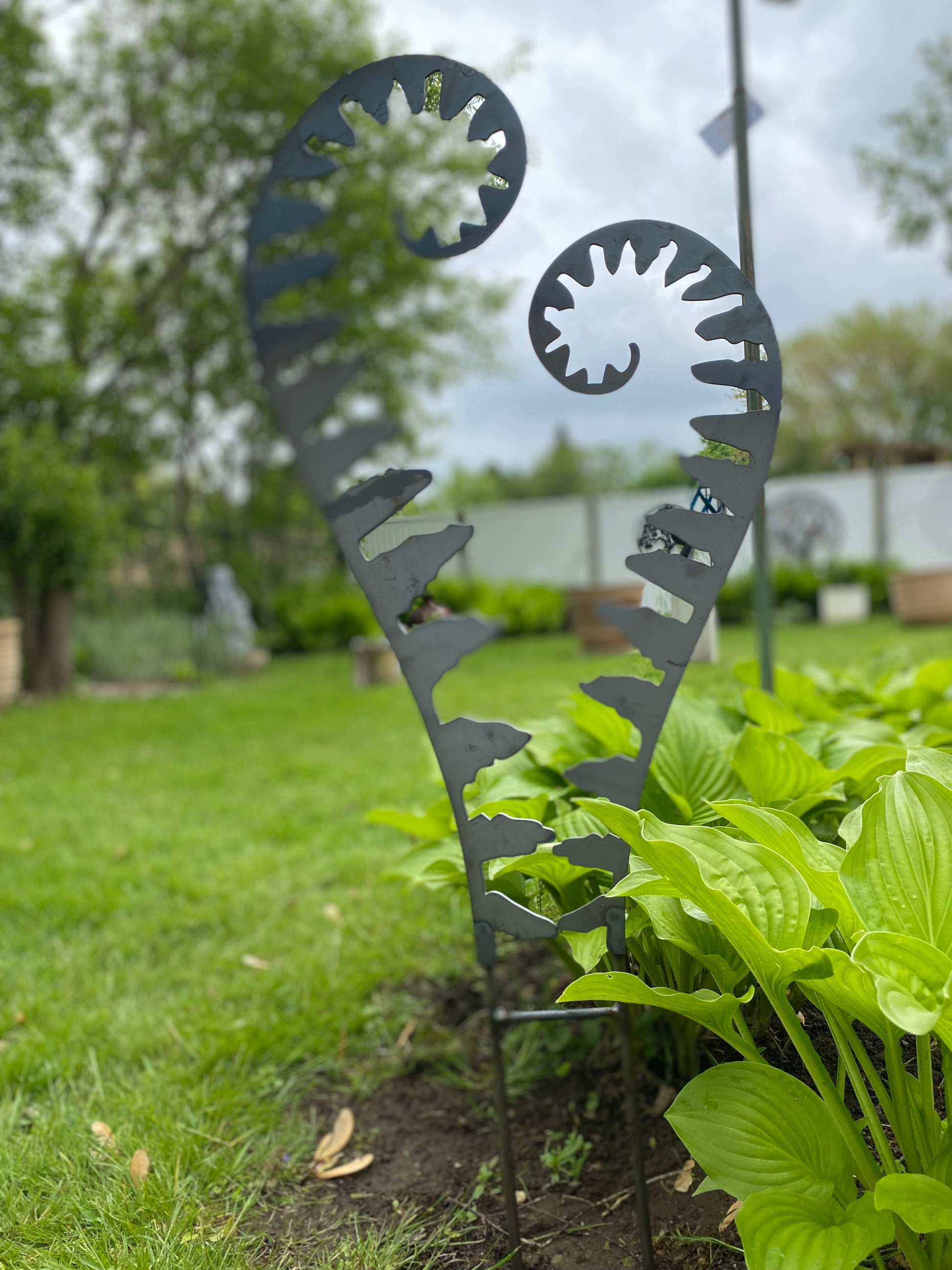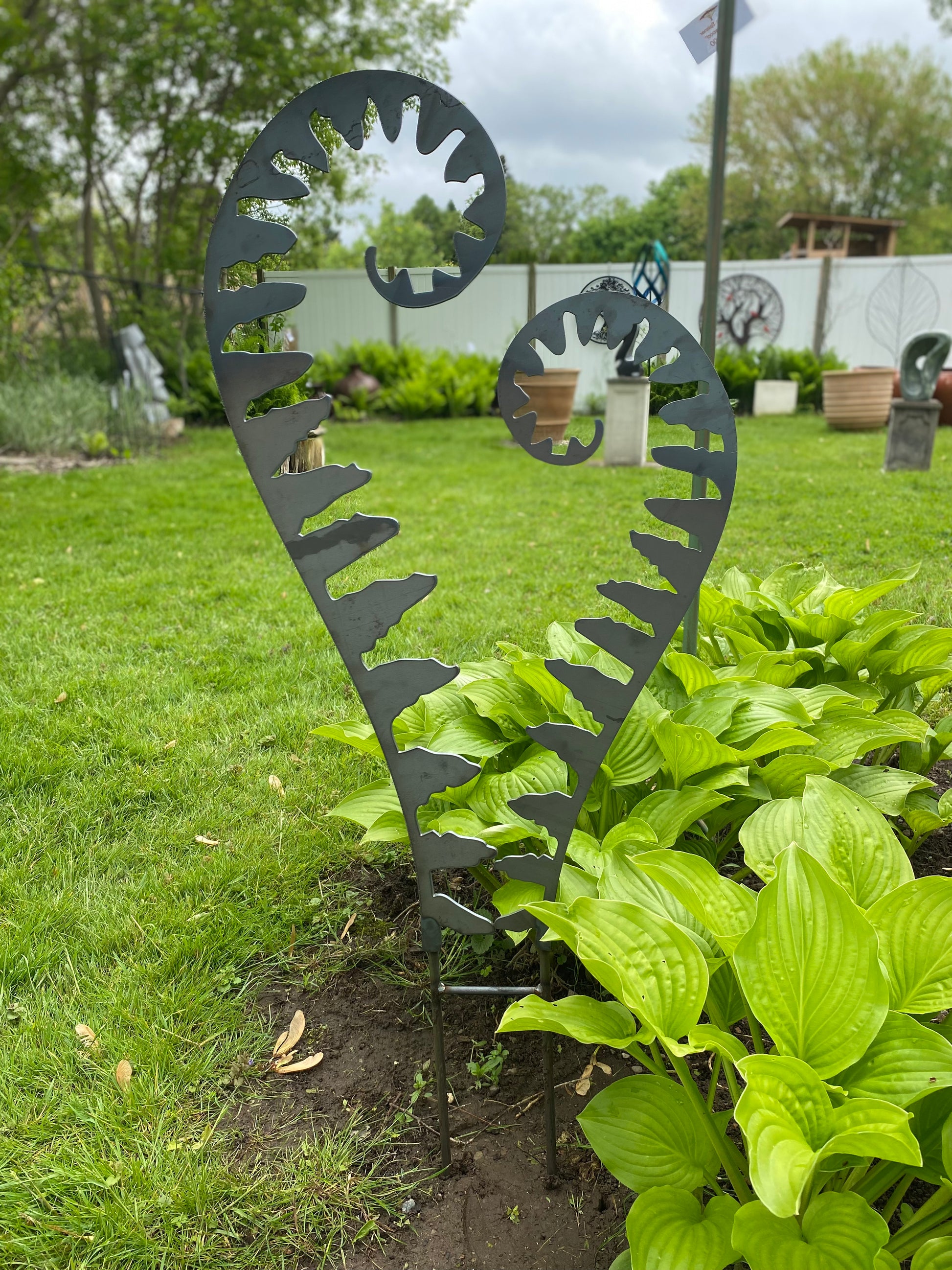 32" Set - Taller Fiddlehead 32"-shorter 25" - Ground Stake 10" (total height including stake 43" width at widest point 16"