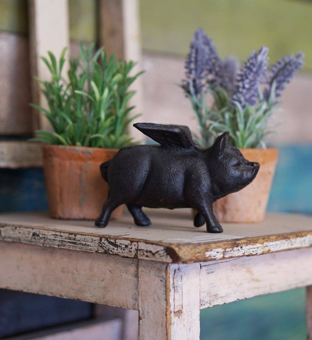 Take flight with our Mini Flying Pig! Made of durable cast iron, this whimsical pig figurine adds charm to any space. Measuring 14 x 8.9 x 9.9 cm, it's the perfect size for an office desk or shelf. Let this flying pig remind you to embrace your imagination and have fun.