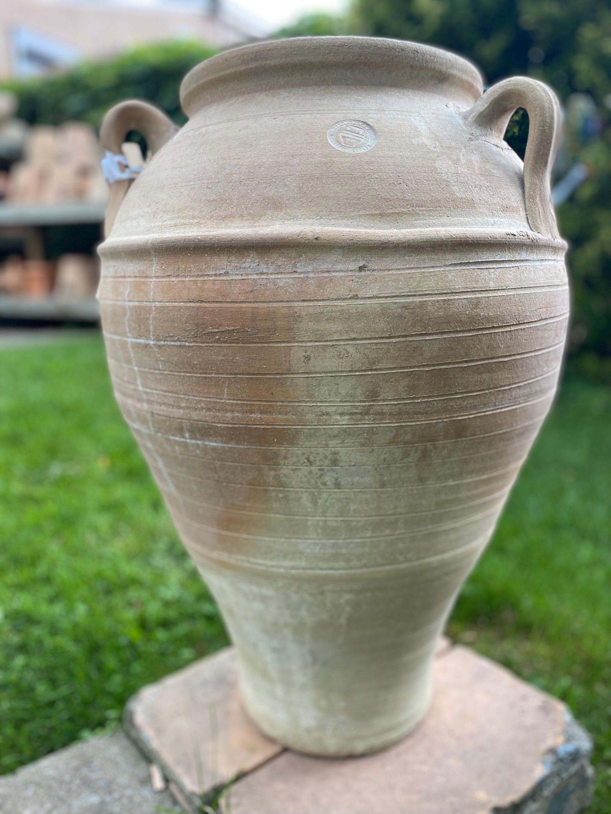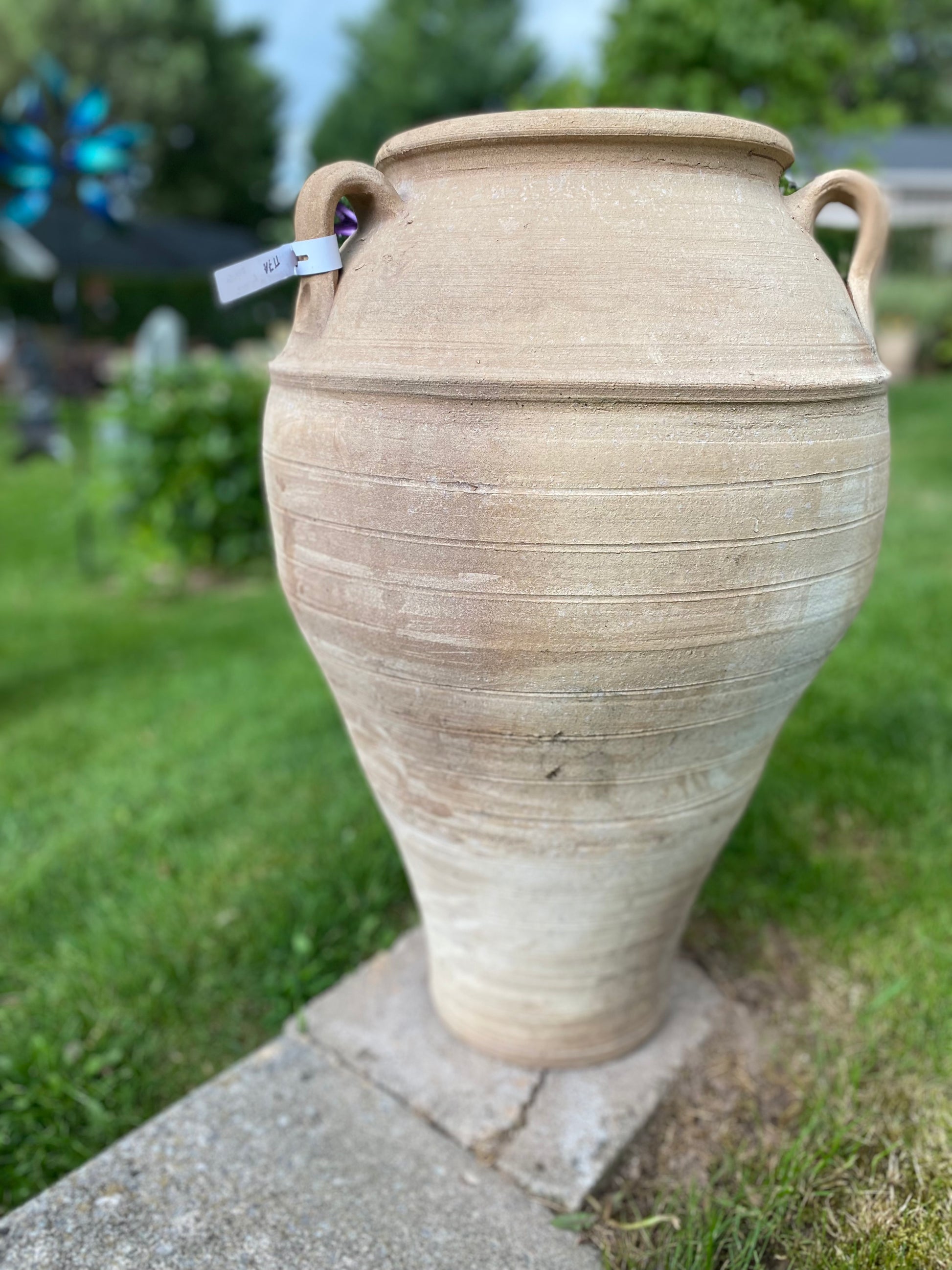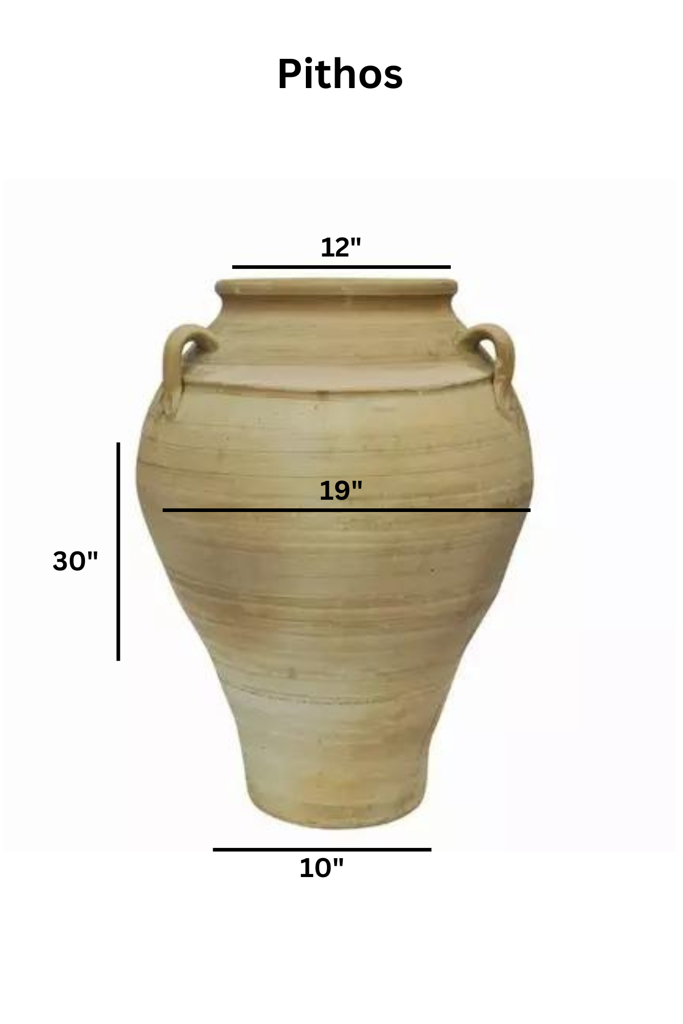 This is a classic Cretan design hand finished with discrete banding and decorative handles. The Pithos Jar confidently stands on its own or can be converted into a statuesque water feature.