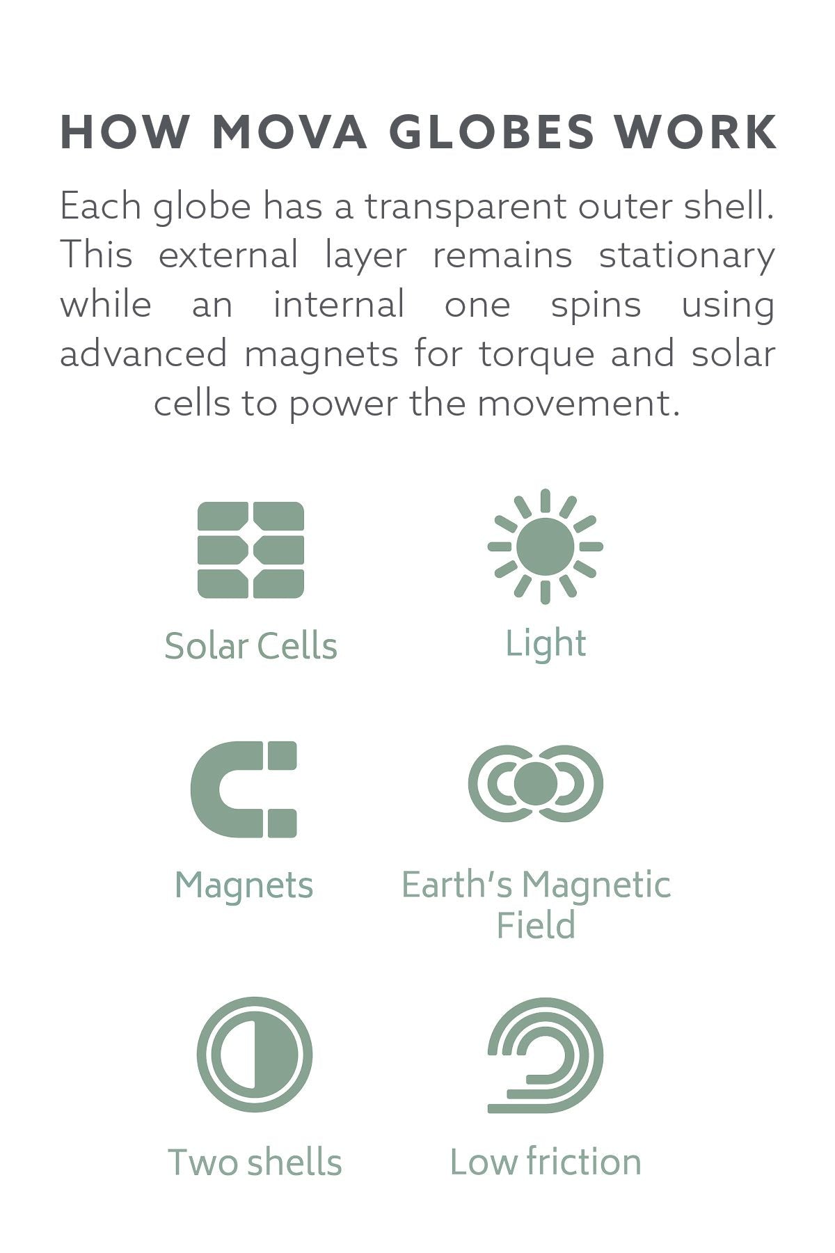This relief map features bright blue oceans combined with shading and color-coding to depict the earth's unique topographical features. It's the world globes you remember as a kid, but with a sleek look and updated features that make it a modern decor must-have. Swirls of white and red lines show ocean currents, while each landmass is depicted in green and brown shades that show terrain features - every mountainous region and desert is clearly shown. This level of detail combined with vibrant colors make this MOVA Globe as attractive as it is informative.