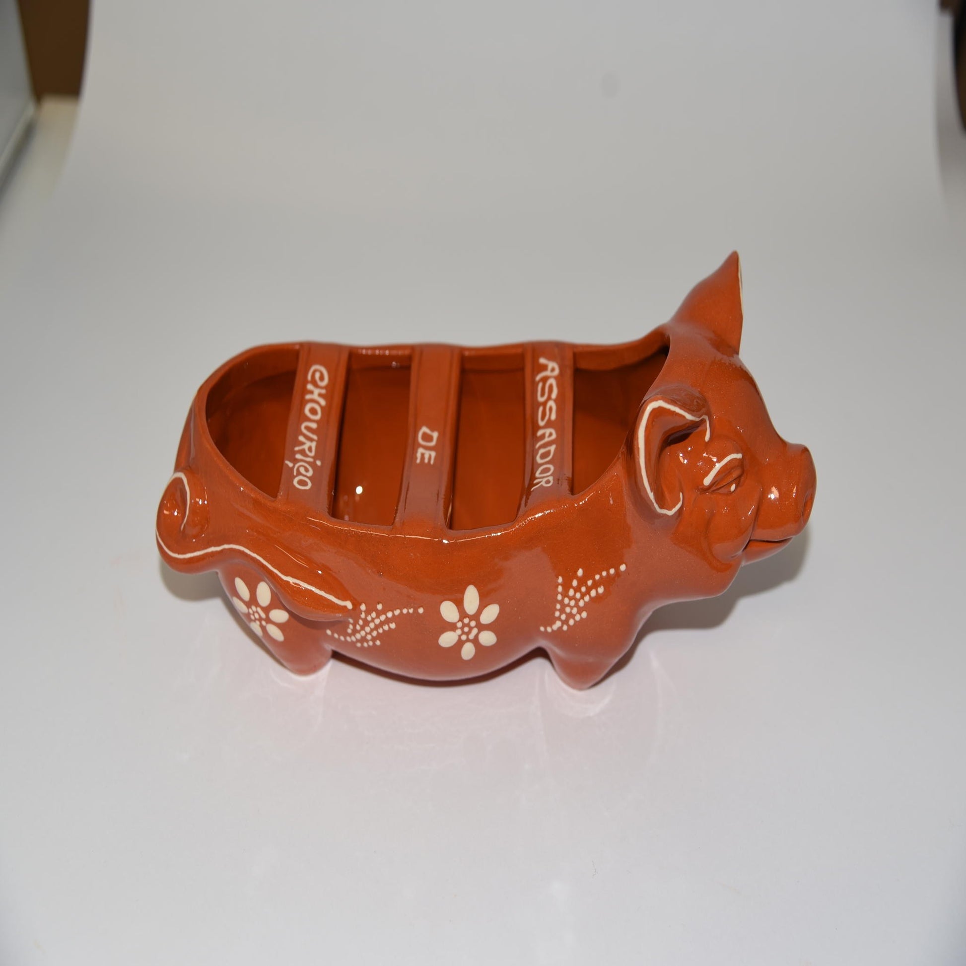 This clay sausage roaster is hand painted with traditional black and white designs. Use to make flame grilled sausage (chourico) typically called Chourico a Bombeiro.