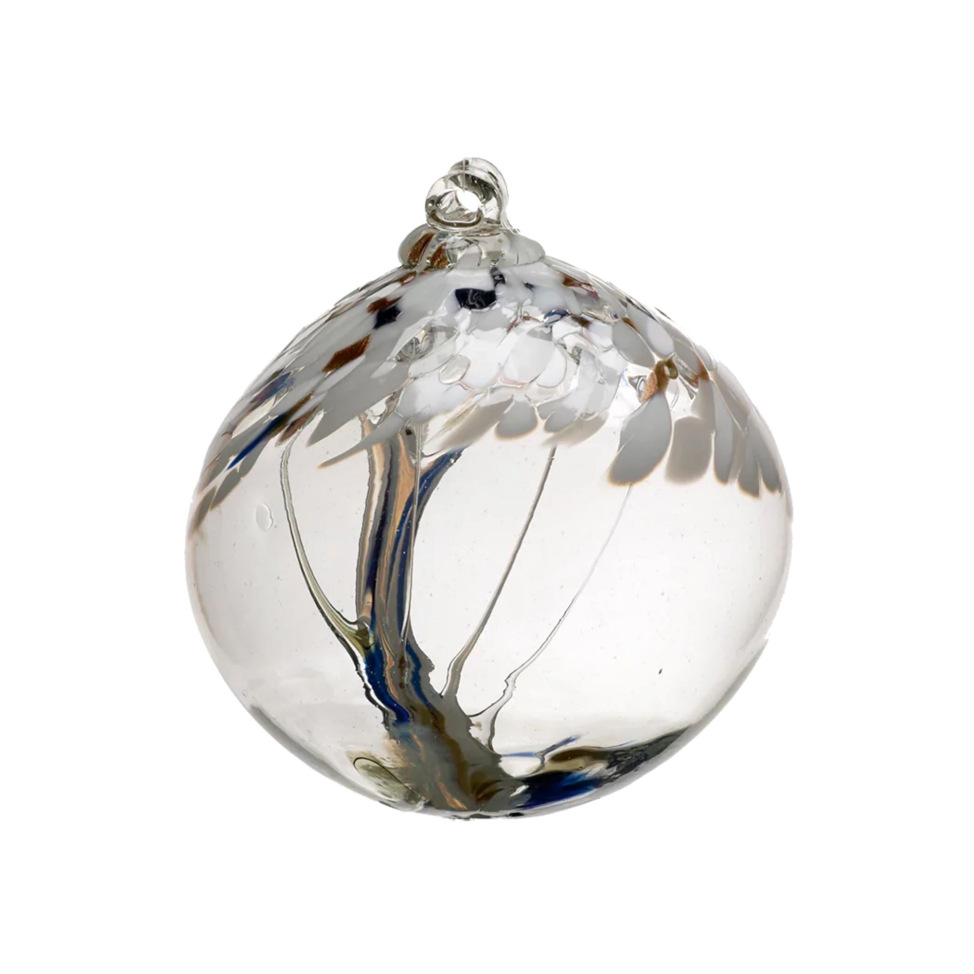 The Tree of Peace Orb is part of the tree of enchantment collection, Kitras Art Glass’ signature creation. With colourful glass “leaves” branching over the orb's surface and “trunk” webbing sprouting up through the interior, each orb is magnificent.