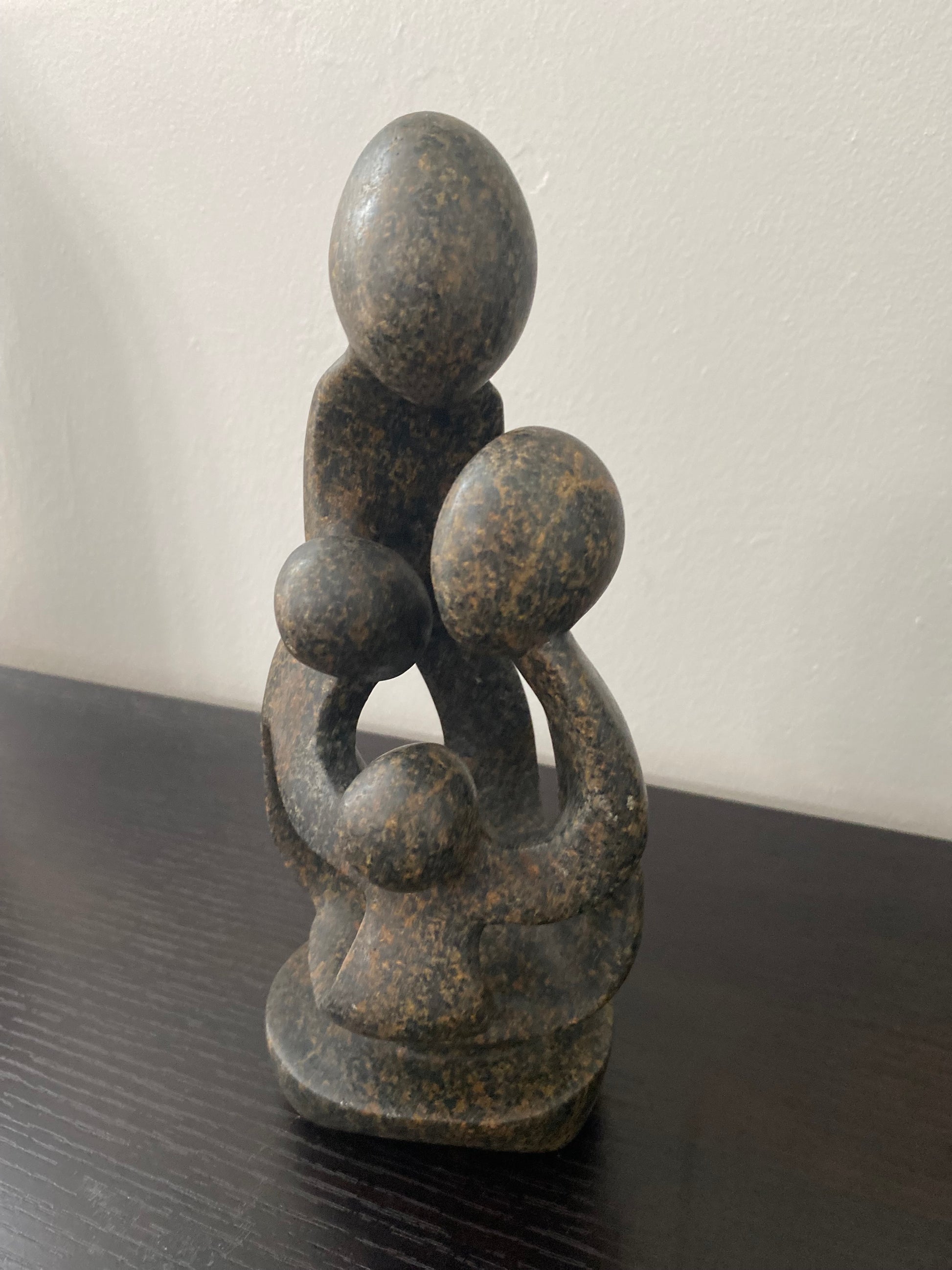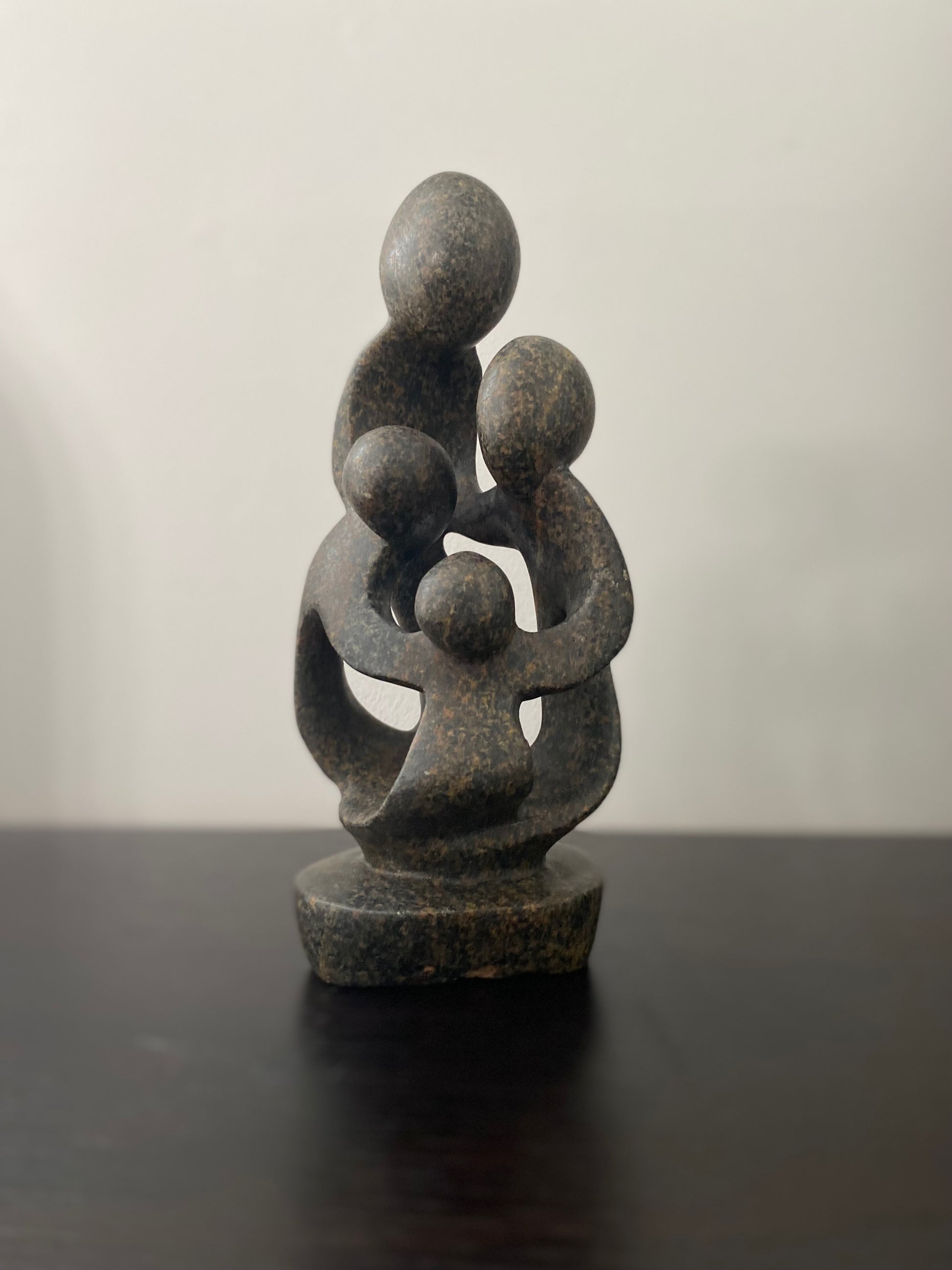 Included with each piece is a tag reading: “”Ukama” is the Shona word for “close family relationship”. Central to Shona culture is the support and of the family. This family sculpture portrays the bond of support between family. The arms are united to shield them from outside adversity while at the same expressing their love. Crafted in Zimbabwe.”