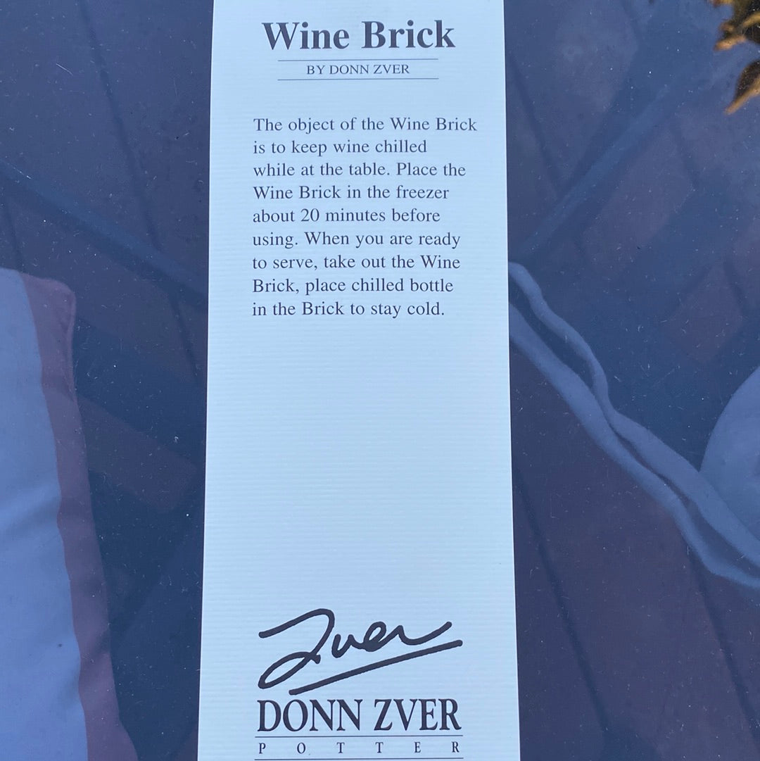 Wine Brick 5” W x 8” H Keeps your wine chilled at the table. Place the brick in the freezer about 20 minutes before using. When you are ready to serve, take out the wine brick, place chilled bottle in the brick to stay cold.