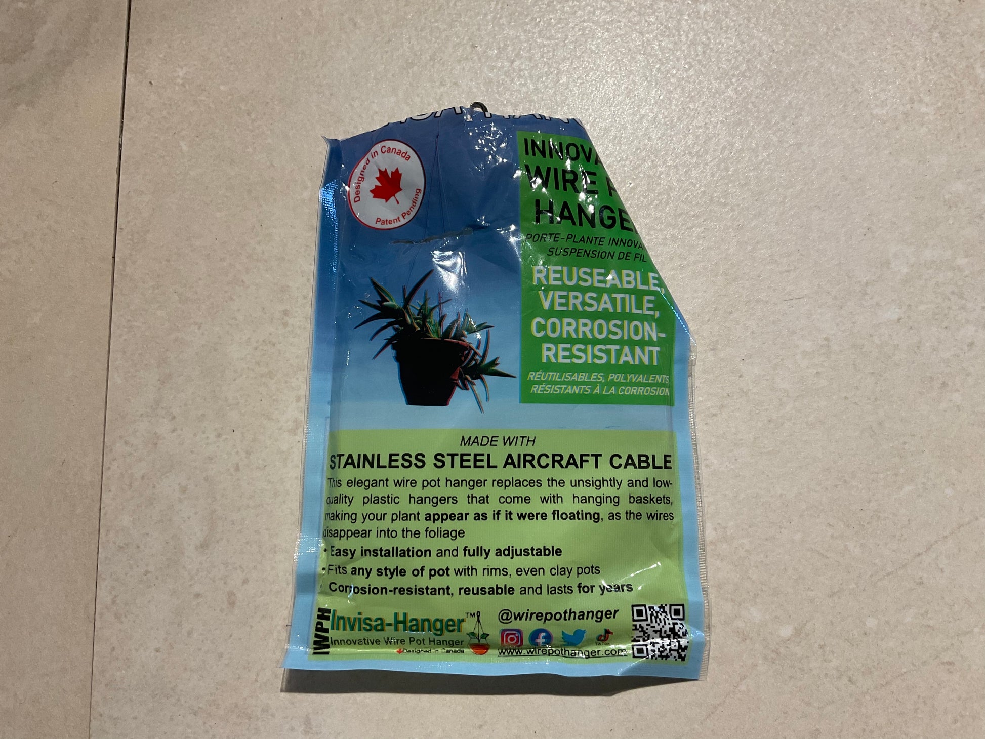 Hanging length decreases as the diameter of the container increases: an 8" container will hang about 24" from a hook, while a 12" pot will hang about 20". Not recommended for use with containers less than 8" in diameter.