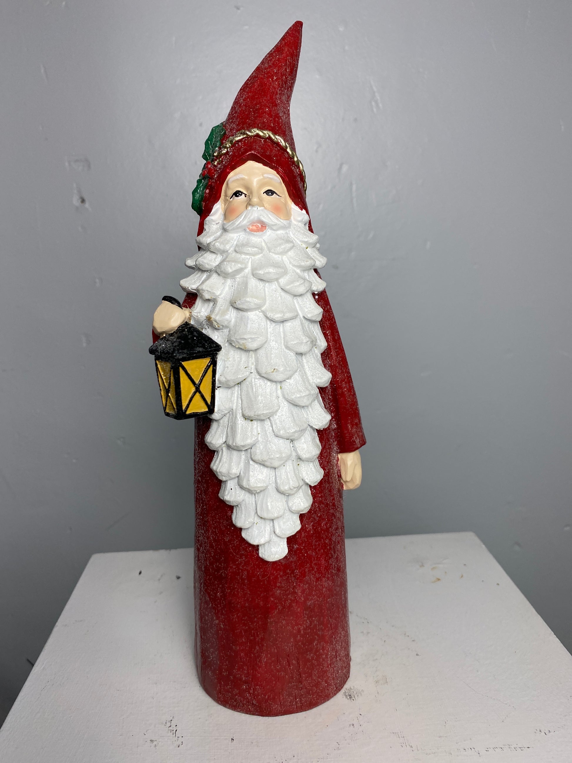 Wood Look Santa with Lantern 12.5" tall