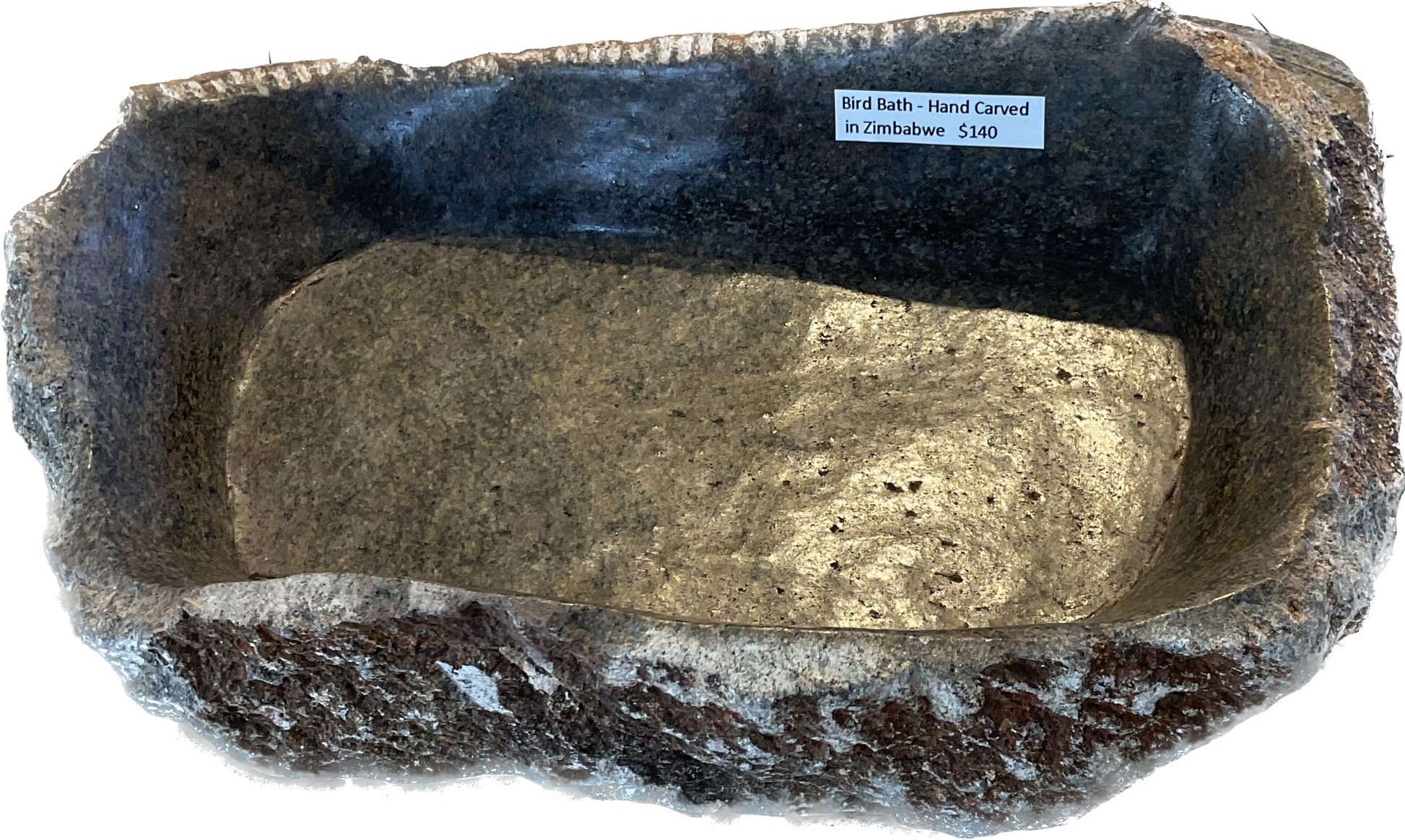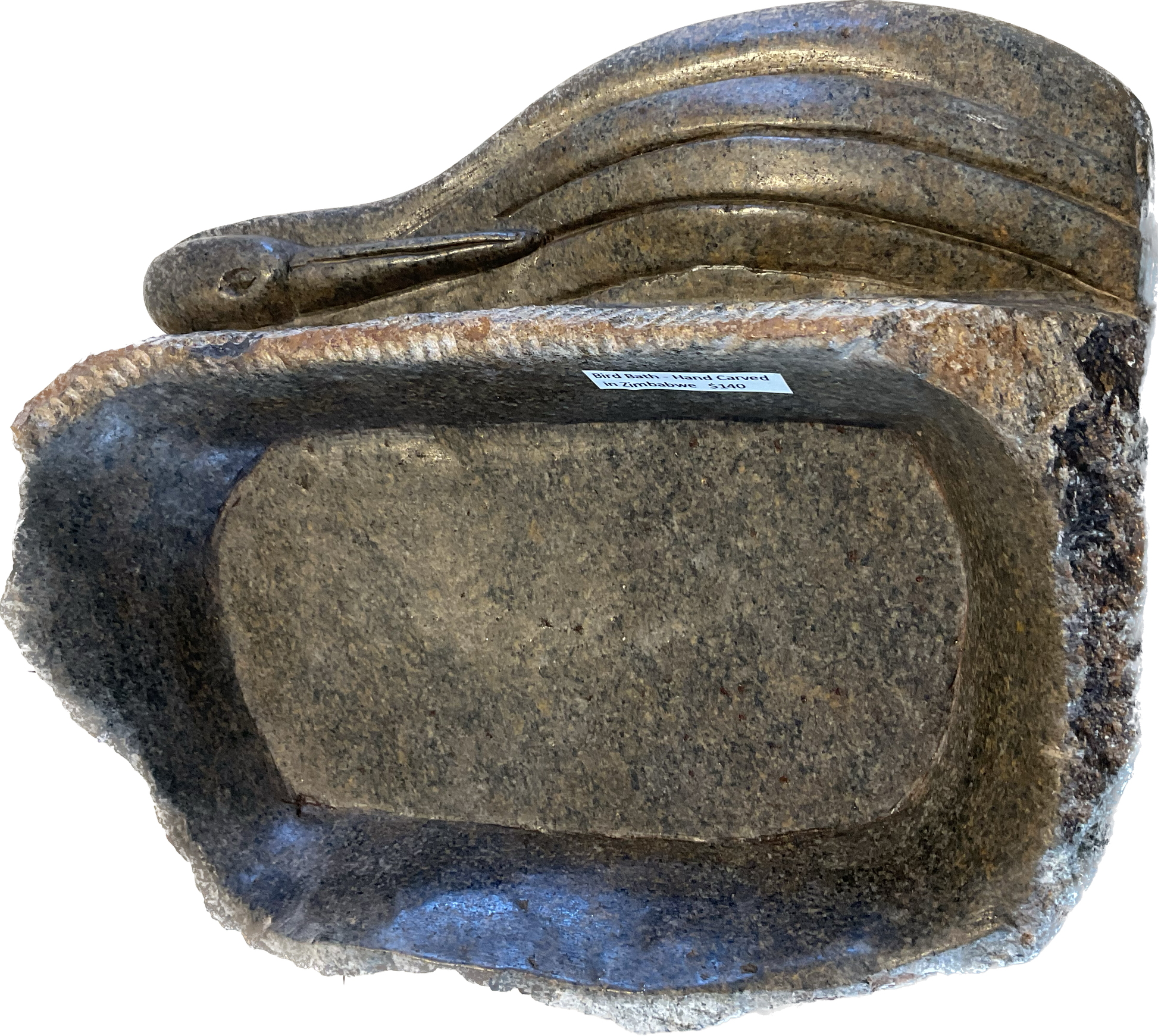 Hand carved stone bird baths made in Zimbabwe. These are sure to add character to any garden and are perfect for either feeding or bathing your feathered friends.